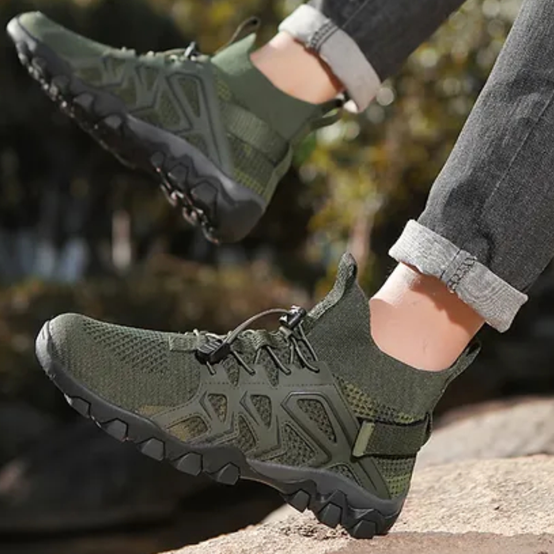 Crafted from breathable, durable materials, these shoes ensure your feet stay comfortable and dry, even on the longest trails. The flexible sole allows your feet to move naturally, enhancing your balance and stability on uneven surfaces, while the wide toe box gives your toes the space they need.